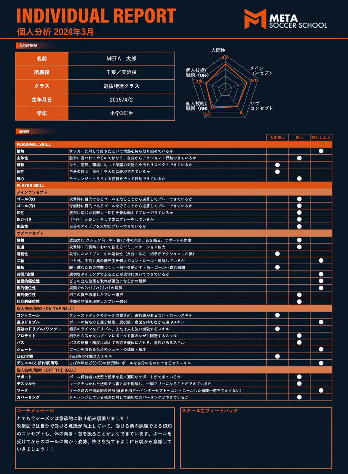 - 協調性:ひとりではサッカーはできない。周りの支えてくれている仲間を大切にする