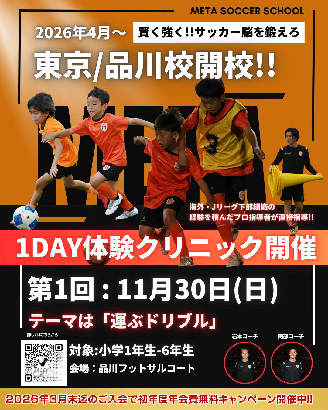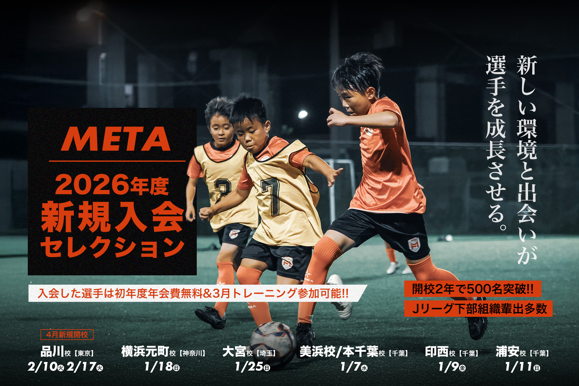 プロ選手になるために必要な「人間力」の基盤を作るはたらきがけをしています。選手としても、ひとりの人間としても、一人前になるためにこの年代から「自主性」を引き出し、やらされているのではなく自ら行動する習慣をピッチ外から徹底指導します。METAサッカースクールでは独自の人間力を育てる「5つの価値観」を大切にしています。